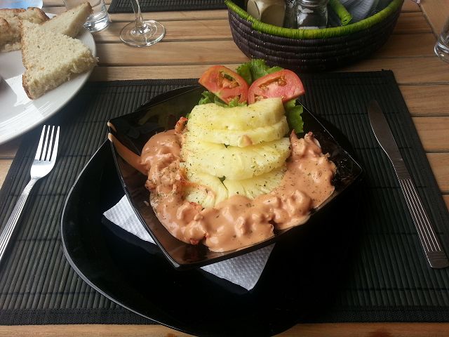| Birds Nest Ananas mit Spezialität Süsswasserkrabben aus 2000 m Höhe | Lake Bunyoni Lodge Birds Nest Salad Avocado |