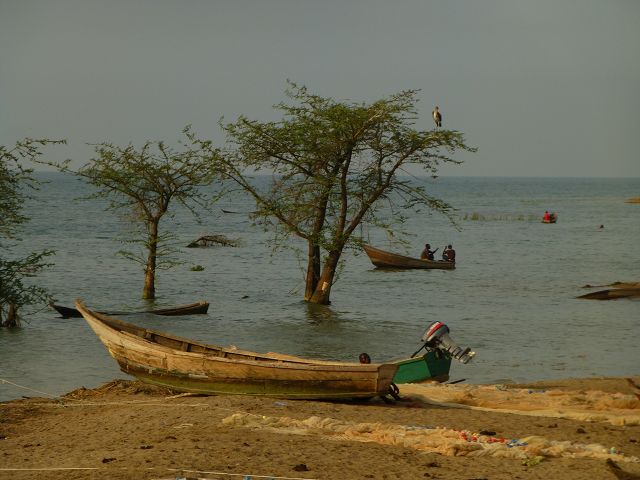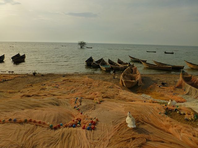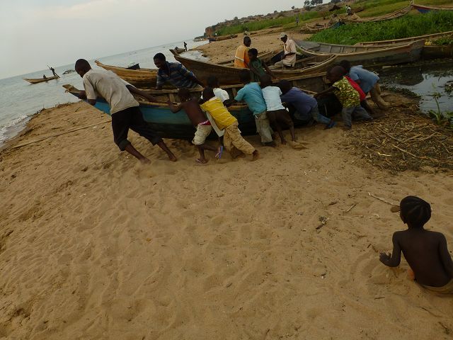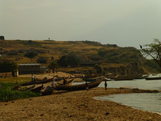 back Uganda   Uganda   Lake Albert Fischerdorf  Lake Albert  Fishermen  Kabwoya Wildlife