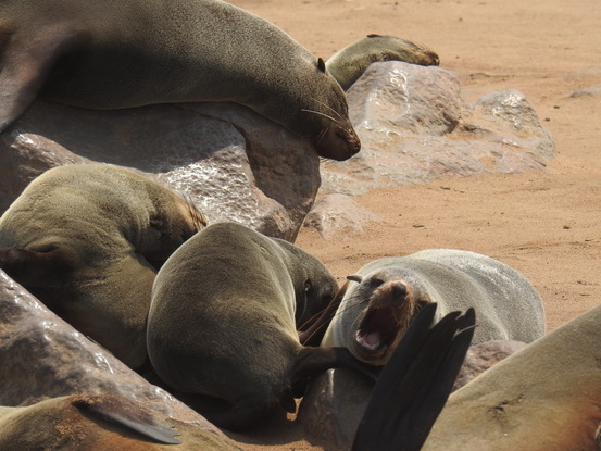 | Cape Cross Robben Seals am Kreuzkap Namibia Robben lieben es drunter und drüben | Cape Cross Robben Seals am Kreuzkap Namibia |