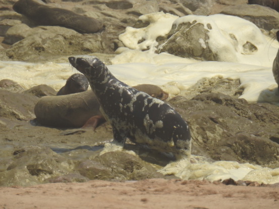 | Cape Cross Robben Seals am Kreuzkap Namibia | Spotted Seal Schaumbad am Kreuzkap Namibia |