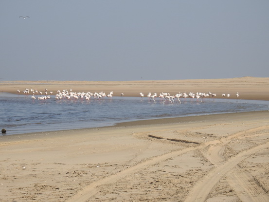 Flamingos: The Walvis Bay lagoon, adjacent to Pelican Point, is a haven for greater and lesser flamingos.