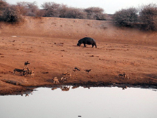 | erindi Wilddogs Painted Dog Afrikanischer Wildhund | erindi Wilddogs Pride of 22 Afrikanischer Wildhund meets Hippo |