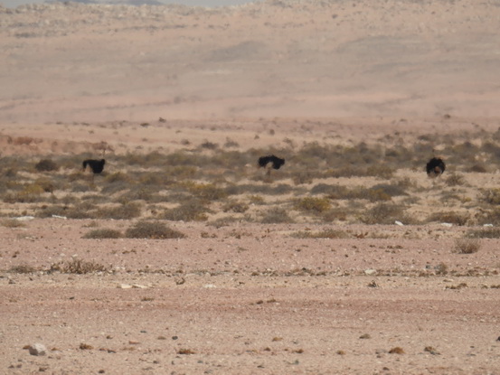 Wüste  Ausblick Richtung Wüstenquell 3 Straussenmänner Pad Wüste  Ausblick Richtung Wüstenquell nearly Desert