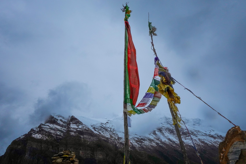 | Umrundung Annapurna Zelt | Gebetsfahnen |