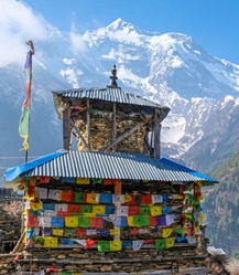 | Phokara | Gebetsmühlen und Fahnen am Annapurna |