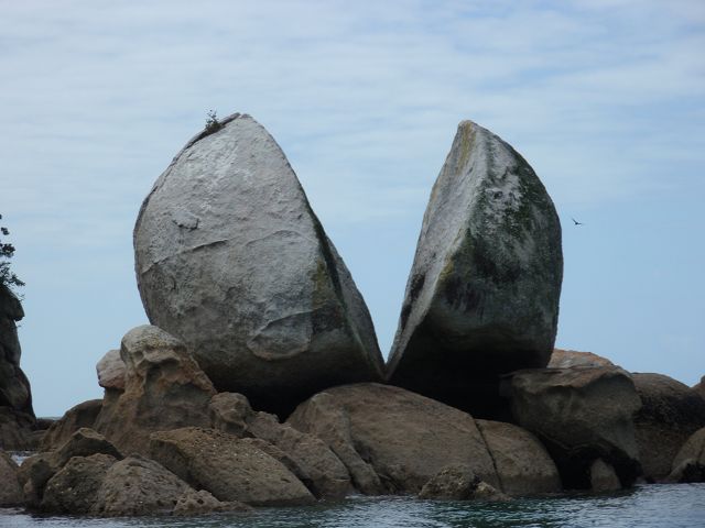 | Maharau Apple Rock Abel Tasman Nationalpark | Maharau Apple Rock Awaroa Inlet Abel Tasman Nationalpark |