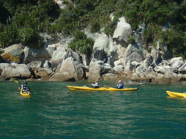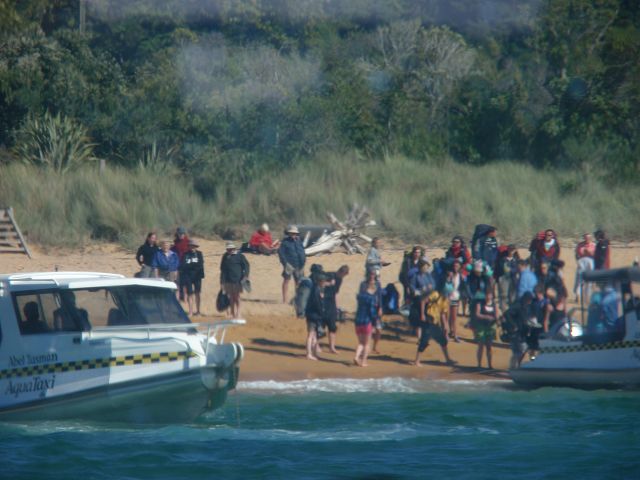 | bei so eine Gruppe kommen mehrer Taxen Awaroa Inlet Abel Tasman Nationalpark | Awaroa Inlet Abel Tasman Nationalpark |