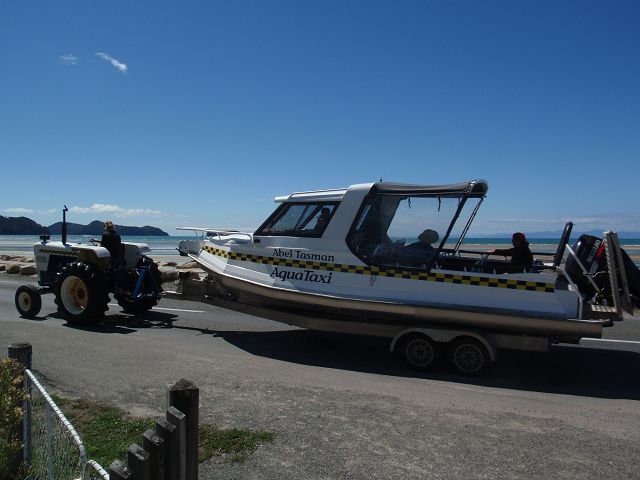 | special Landing on trailer Watertaxi Abel Tasman Nationalpark | Awaroa Inlet Abel Tasman Nationalpark |