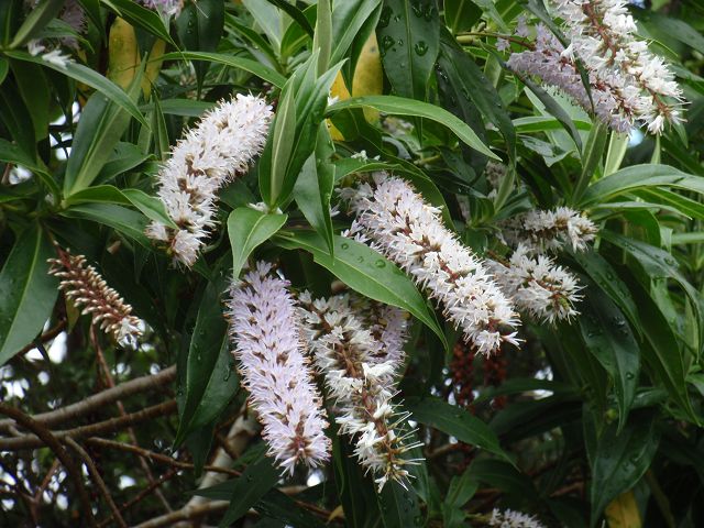 | Pōhutukawa (Metrosideros excelsa) Pohutukawas wachsen gewöhnlich bis zu einer Höhe von 15 Metern, die Krone ist meist groß und rund ausgebildet. Einzelstehende noch größere Exemplare bilden Luftwurzeln aus, um die weit ausragende Krone besser zu stützen. Der Baum ist immergrün und bringt eine große Anzahl von roten Blüten, seltener auch gelben Blüten, hervor. | Durch diese den ganzen Baum bedeckende Blütenpracht und der Zeitraum der vollen Blüte im Südhemisphärensommer zwischen Mitte Dezember und Mitte Januar führten zur Bezeichnung „Weihnachtsbaum“. Abhängig vom Standort des Baumes können aber auch noch Ende Februar einzelne blühende Bäume gesichtet werden.von wiki |