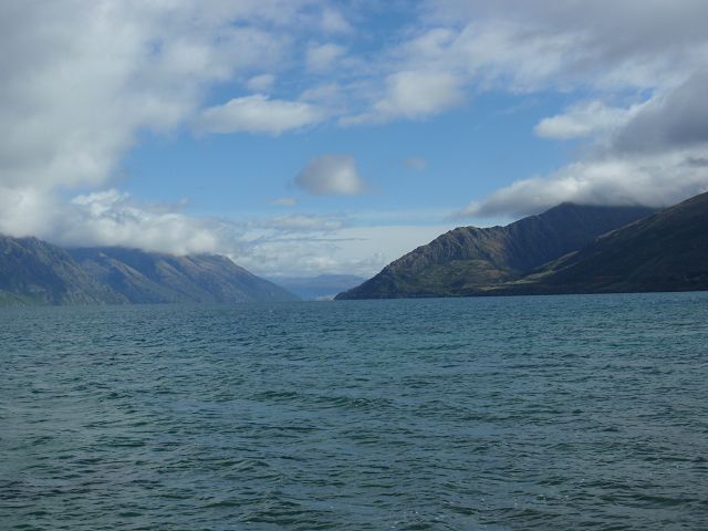 Der See liegt in einer glazialen Talsenke und ist von den Southern Alps und den Remarkables umgeben.