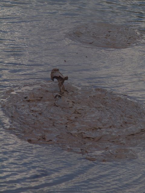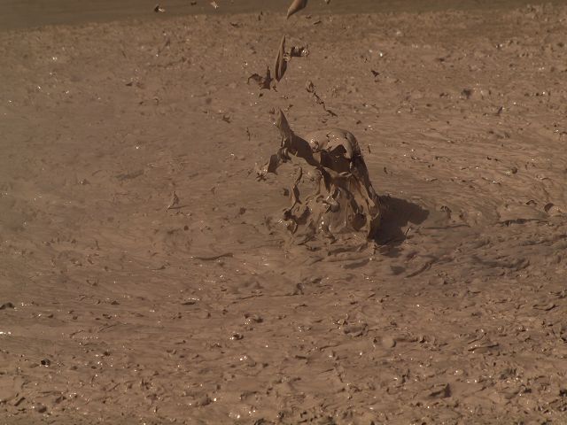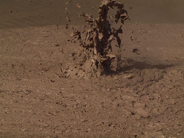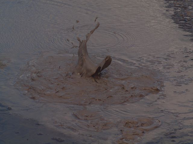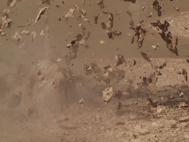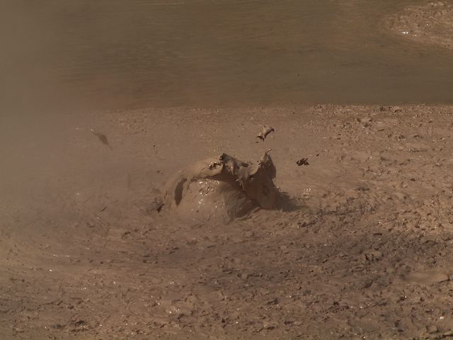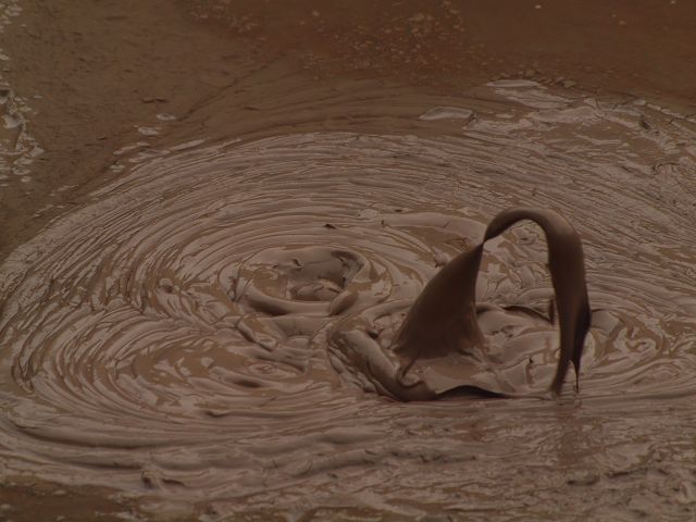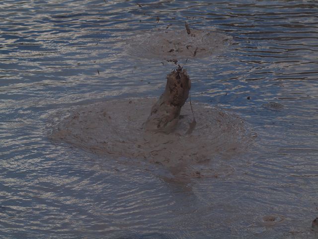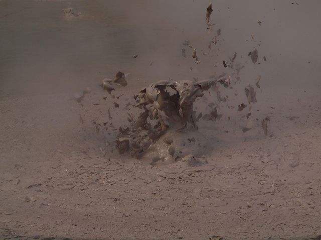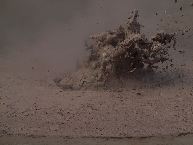 "Mudbomb" (Schlammbombe) auf das Phänomen, bei dem Schlamm aus einem