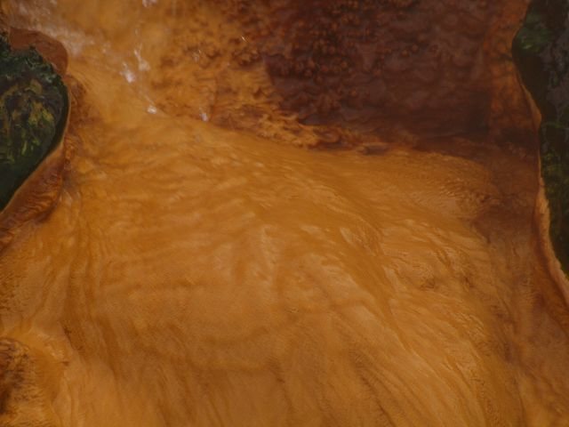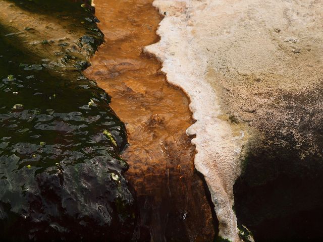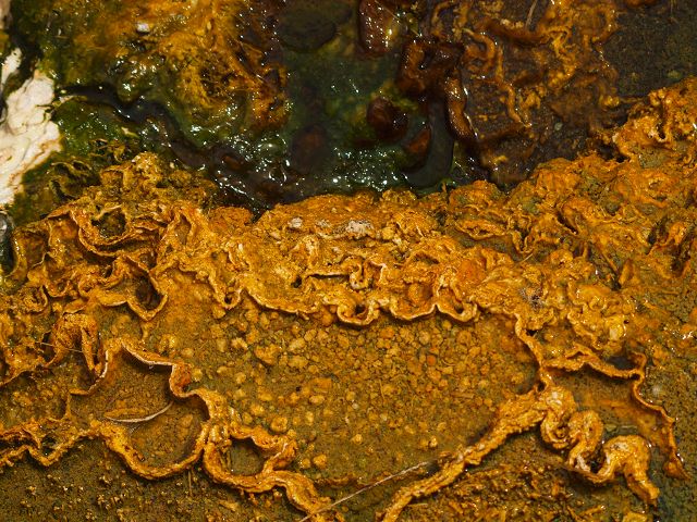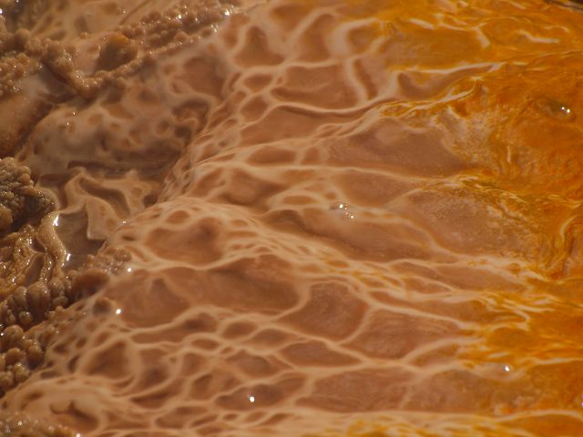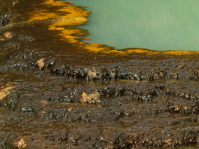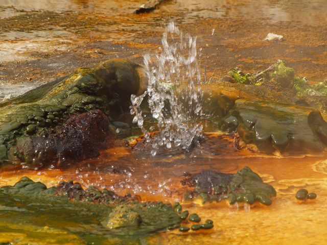 vent, filled with bubbling grayish-blue water that is usually enveloped in a