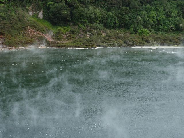 second-largest hot lake in the world, it is a flooded fumarole, or volcanic