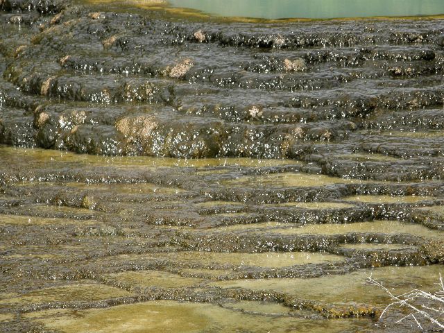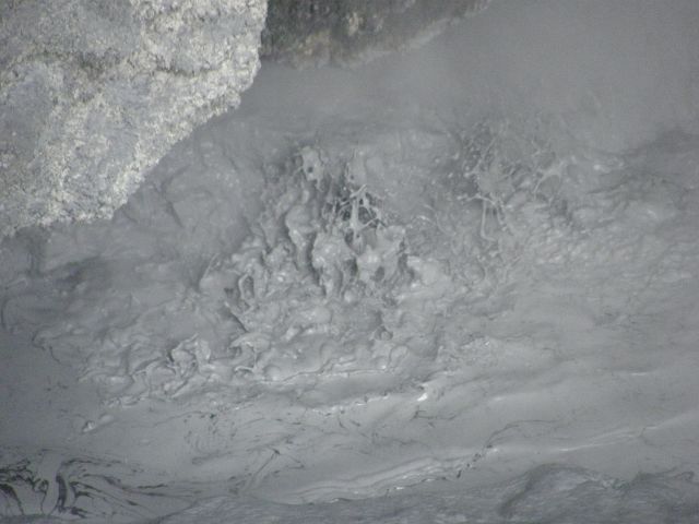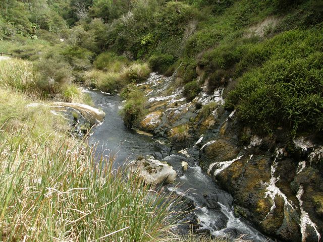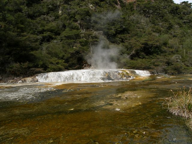 Marble Terrace" (Marmor Terasse) mit fast 100 Grad heissem, abfliessendem Wasser "Warbrick Terraces" Aus diesem unübersehbar kalkhaltigen Zufluss bauen sich sukzessive die beeindruckenden Sinterterrassen der Warbrick Terraces auf Warbrick Terraces Mördermuschelquelle Lake Rotomahana mit Mt.Tarawera Bootstour auf dem Lake Rotomahana: . |