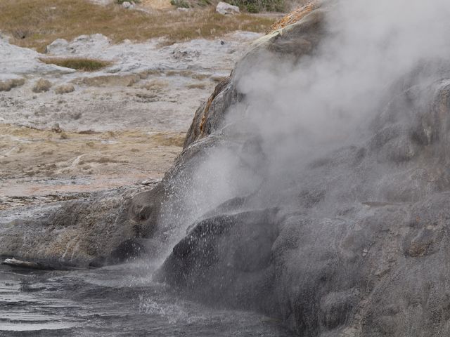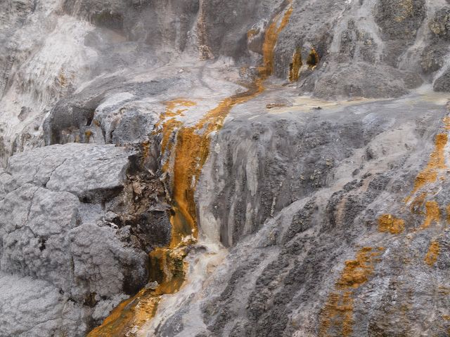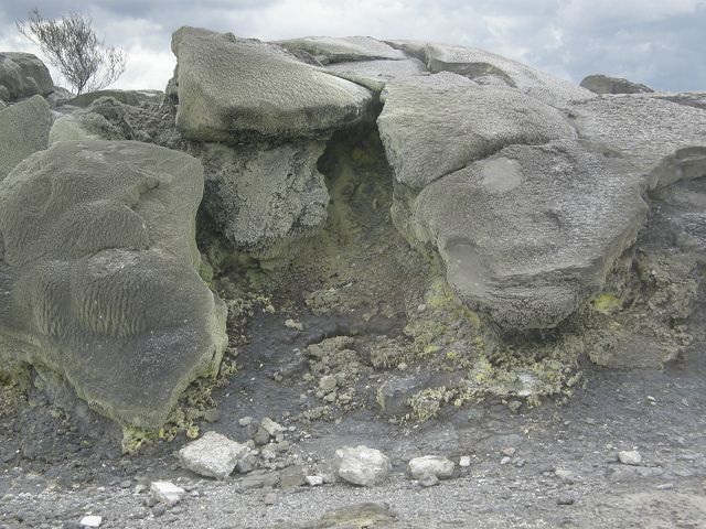 und Dampf entweichen. Diese Fumarolen erzeugen einen ständigen Nebel