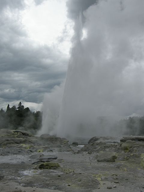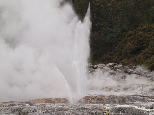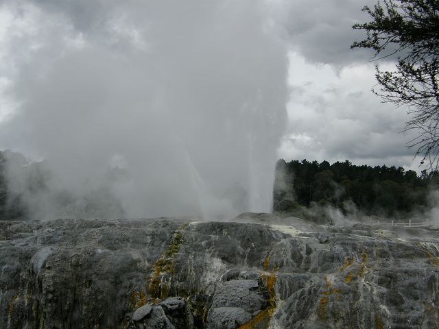 bricht oft kurz vor oder nach dem Pohutu aus.