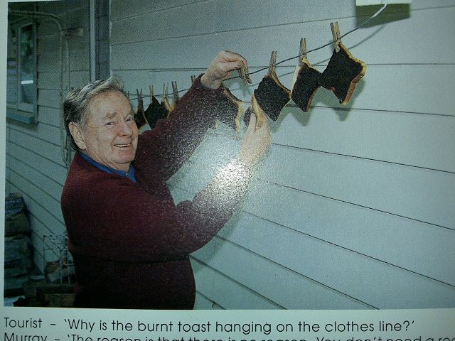 | Kiwi hängt verbrannte Toast auf die Wäscheleine | |