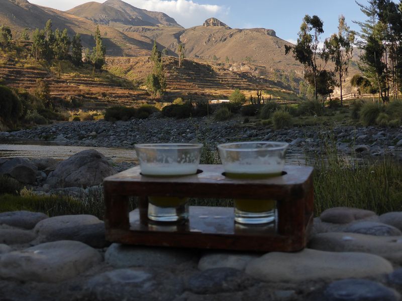 Colca Canyon   Colca   Colca Lodge Pisco Sour und Coca Sour  am Beckenrand Colca Canyon   Colca   Colca Lodge