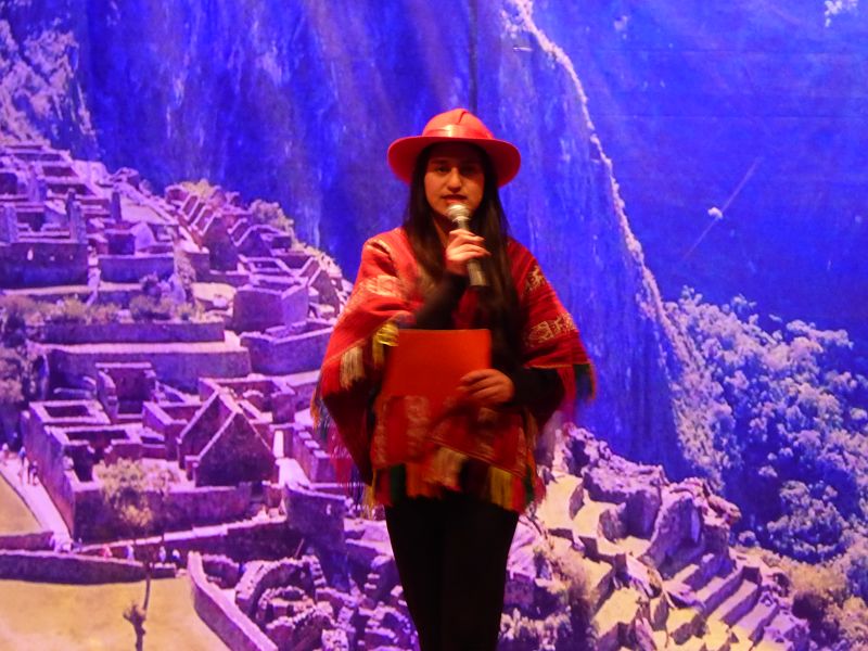 | Peru Cusco 3200 m Centro Qosqo de Arte Nativo Peruvian folk dance | Cusco alte Inkastadt Centro Qosqo de Arte Nativo Volkstanz aus Peru Ansagerin |
