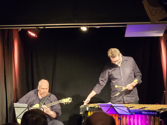 Zwei Große ihres Fachs an ihren Instrumenten. Frank Haunschild ist Professor an der Musikhochschule Köln für Jazzgitarre, Matthias Strucken ist einer der versiertesten Vibraphon- und Marimba-