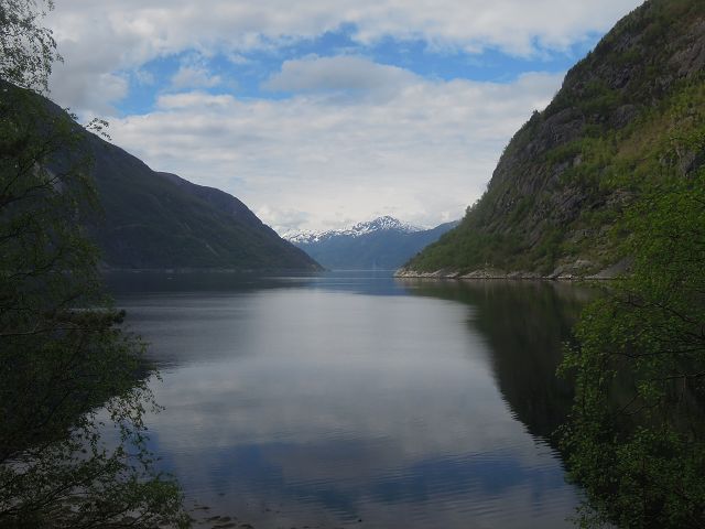 Gäbe es im Königreich Norwegen einen Wettbewerb um die Wahl des schönsten Fjordes, so wäre der Hardangerfjord nicht nur unter den Favoriten, sondern sicherlich ein Titelanwärter. Rund 180 Kilometer schlängelt er sich an bis zu 1600 Meter hohen Bergen vorbei ins Festland und schlägt dabei so manchen  Schönheitsrekord. Die Spielregeln in den Disziplinen „anmutig, spektakulär und Atem beraubend“ hat dabei die Natur selbst aufgestellt, und zugegebener Maßen dieses Fleckchen Erde mit einem ordentlichen Vorsprung ins Rennen geschickt. Nirgendwo sonst stürzen Wasserfälle so beeindruckend und tosend in nahezu bodenlose Tiefen; an kaum einem anderen Ort der Welt ragen mächtige Gletscher so imposant und stolz in den Himmel; und wo sonst bilden wild romantische Berghänge einen so unerwarteten Kontrast zur kargen, aber dennoch einzigartigen Kältesteppe? „Die Landschaft ist so schön, dass es innerlich schmerzt“, ließ sich denn auch die berühmte  Schauspielerin und Landestochter Liv Ullmann in ihrem Buch „Wandlungen“ hinreißen. Wenn das Schiff in Eidfjord ankommt, kann man sich von dort auf einen ausgiebigen „Leidensweg“ begeben, von dem man erst tausend unvergessliche Eindrücke später wieder erlöst wird.