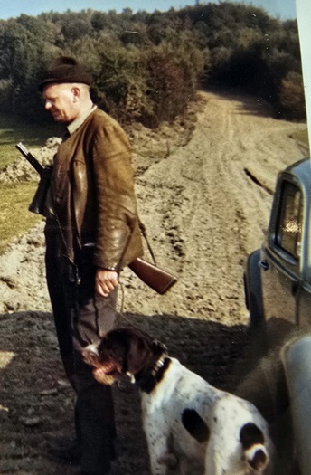 Walter Rauschenbach  mit DD Hündin Eibe Kitzsuchenweltmeister Walter Rauschenbach + Heinz Stracke in Wörde mit Afra vom Rauschenbach