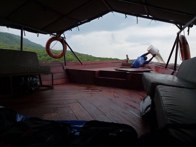 durch den hohen Wellengang war das Boot leck es mal in eine flache Bucht dann Wasser raus