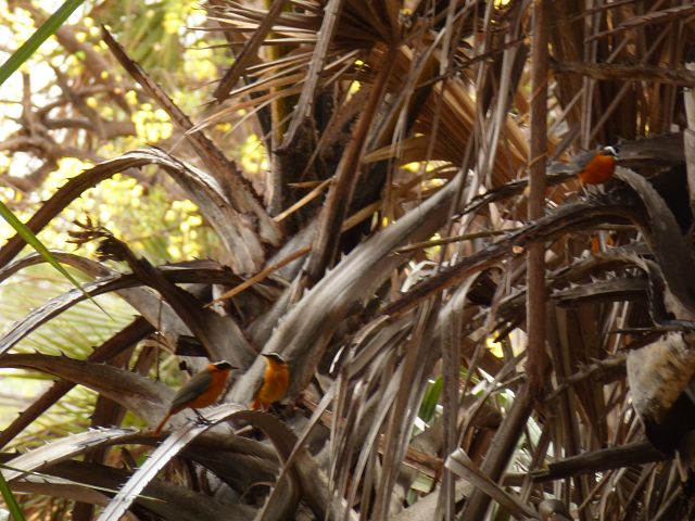 Zelte befinden sich im Schatten von Doum-Palmen und anderen Bäumen. Vom Boot aus