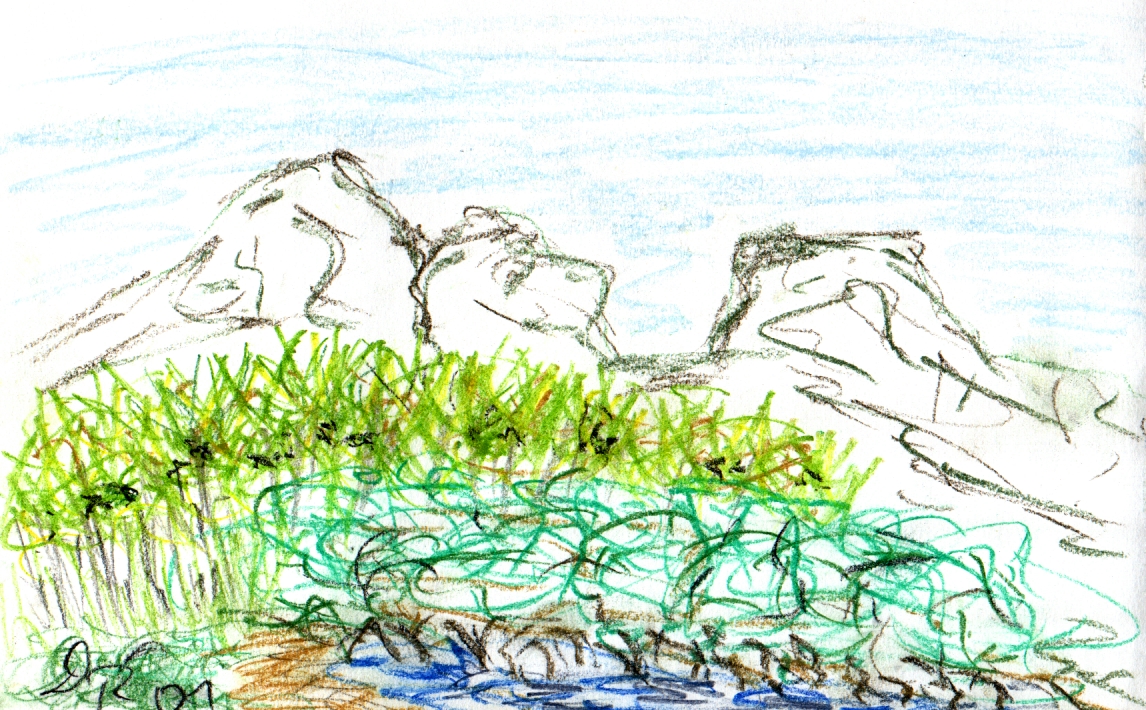| Ölkreidezeichnung Koh pee pee Felsen und Dschungel Palmen und Strand Skizzen Ölkreide Skizzen Ölkreide Thailandgemälde Thailandskizzen |