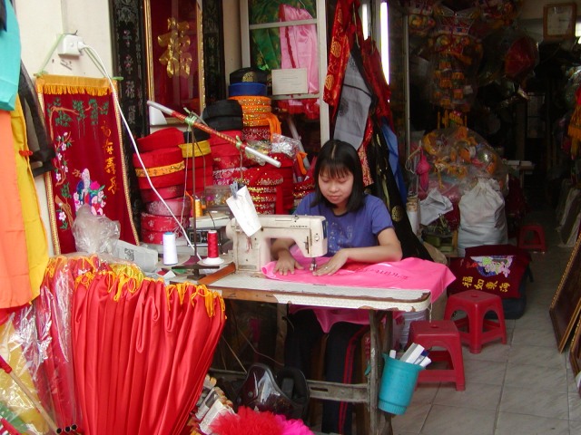 Altstadtstrassen von Hanoi die Zunft der Handwerker Fahnennäher