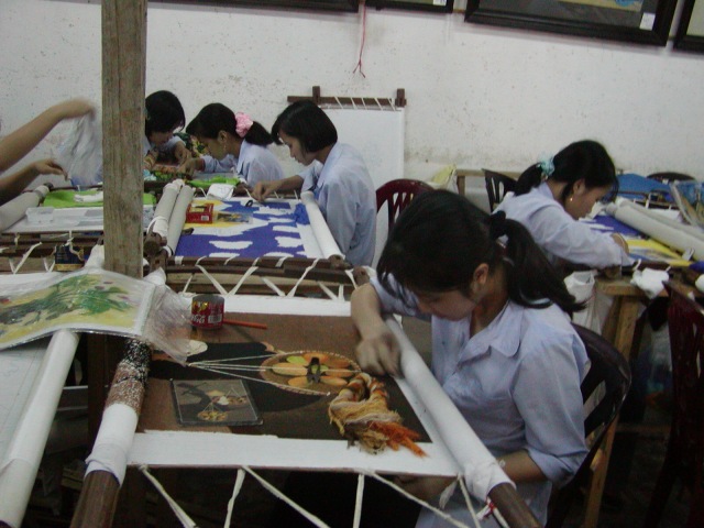 In der Stickerei Hanoi , wo Bilder mit Nadel und Faden nach Originalen kopiert werden