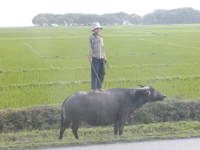 Hütejunge Die Wasserbüffel werden zum Hüten auf die schmalen Erdwälle zwischen den Reisfeldern getrieben