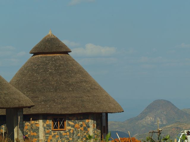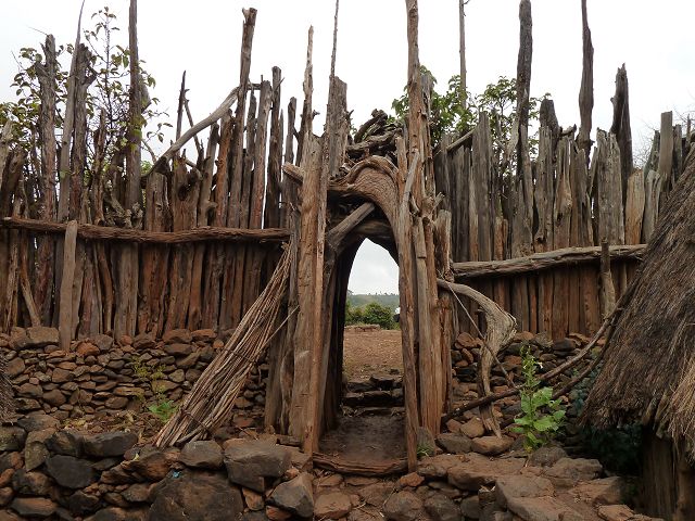 Waga Waga  Totenwächter   oben rechts Konso Kino Eingang zum Konsodorf
