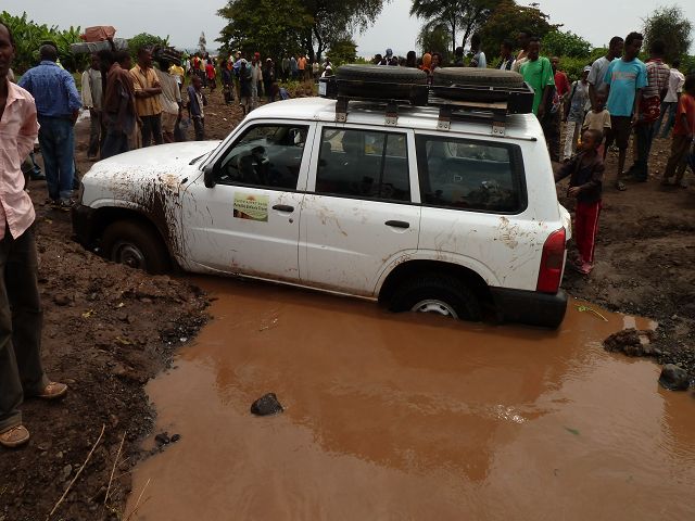 | wir sind dann mit unserem Patrol durch Bananenfeld gefahren ..... | .........dann hingen wir fest |