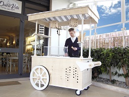 und Granite Der Eis- und Slushwagen weckt immer wieder schöne Erinnerungen und zieht bei jedem Anlass und Event die Blicke von Groß und Klein auf sich. Wenn wir von Eventwagen sprechen, denken wir sofort an den traditionellen Wagen für Eis und Granitas, serviert mit der klassischen Carapine. Aus diesem Grund darf der Modellwagen LINE in unserer Produktion von personalisierbaren Holzwagen nicht fehlen. Nicht alle Eiswagen haben die idealen Eigenschaften für ein optimales Funktionieren im Innen- und Außenbereich, insbesondere wenn Sie einige besondere Veranstaltungen wie Hochzeiten oder Zeremonien im Allgemeinen berücksichtigen. Insbesondere LINE besteht vollständig aus Tristato-Holz mit besonders anpassbaren Intarsien, die eine dekorative, aber vor allem technische Funktion haben. Die besonderen Einlagen optimieren seine Funktion auch in sommerlichen Situationen im Freien unter der Sonne. Der Wagen für Eiscreme und Slush kann mit vielen Zubehörteilen und Farben vollständig angepasst werden, im Wesentlichen hat er die folgenden Eigenschaften: Gekühlte Vertiefungen (Carapine) für 2, 4, 6, 8 Geschmacksrichtungen; Wagenbedienfeld mit Thermometer; 1 Tablett aus lebensmittelechtem Kunststoff Abm. 1/3 mit Kappe - H 15 cm; 2 Tabletts aus lebensmittelechtem Kunststoff Abm. 1/6 mit Kappe - H 15 cm; Holzräder mit Gummirand und Bremsrad; Preis ab 4.200,00 € + MwSt 22 |