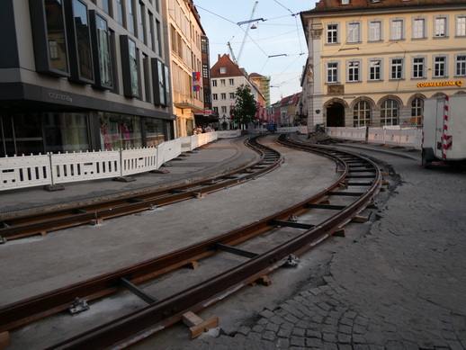 Schiene der tram erneuert amn Pfingsten Blick von der Marienfestung