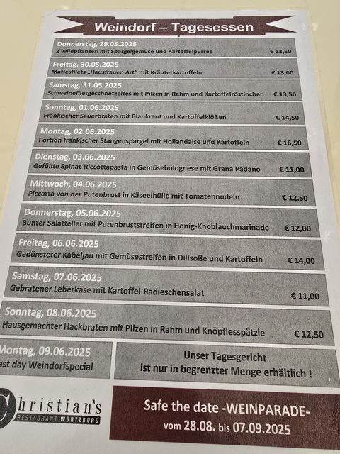 | Weindorf alles ausgesoffen | Christians Restaurant Speisekarte Weindorf |