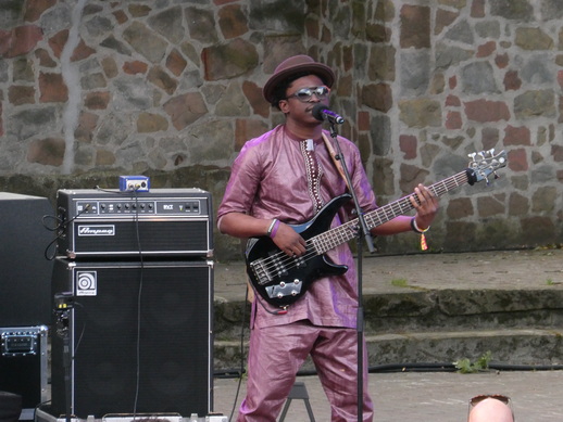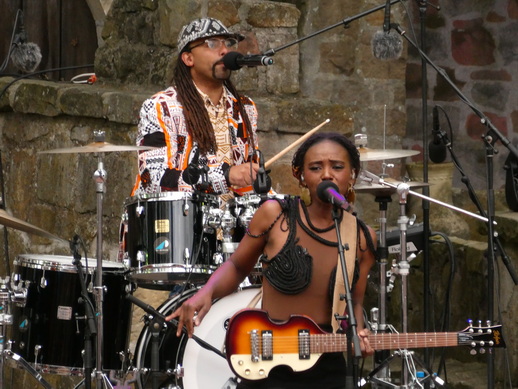Pamela Badjogo - Gabun Pamela Badjogo wuchs in Libreville, Gabun, auf. Sie studiert Biologie und tritt auch als Backgroundsängerin auf. Im Jahr 2005 erhält sie ein Stipendium für ihr Studienprojekt in Mali. Sie zieht nach Bamako, um ihr Biologiestudium fortzusetzen. In Bamako bietet sie ihre Dienste als Chorsängerin an und arbeitet im Studio Bogolan. Sie wird von Cheick Tidiane Seck, dem ehemaligen Keyboarder von "Les Ambassadeurs", unter die Fittiche genommen. Sie singt für Künstler wie Salif Keita, Oumou Sangaré und viele andere. 2015 startet sie ihre Solokarriere mit der Single Bô aus ihrem ersten Album "Mes Couleurs". Nach einer Zeit in Gabun zieht sie nach Frankreich und arbeitet an einem Musikprojekt, einer Fusion aus Jazz und Weltmusik. Nach ihrem zweiten Album "Kaba" hat sie vor kurzem ihr drittes Album Yieh veröffentlicht. Ihr Stil ist ein lebendiger Cocktail aus Afro-Pop, Highlife im Bantu-Stil und Afrobeat. Pamela Badjogo, Gitarre, Gesang Elisée Sangare, Bassgitarre, Hintergrundgesang Shan Lotchi Ludmann, Schlagzeug, Hintergrundgesang Grégory Emonet, Gitarre, Hintergrundgesang |