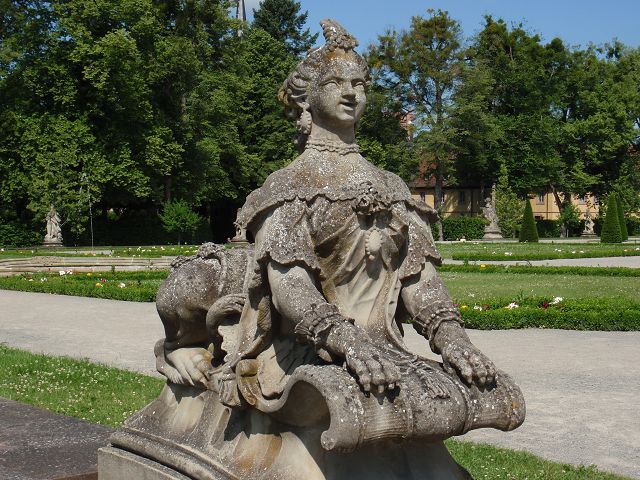 Veitshöchheim. In Veitshöchheim Rokokogarten mit Plastiken von Ferdinand Tietz,