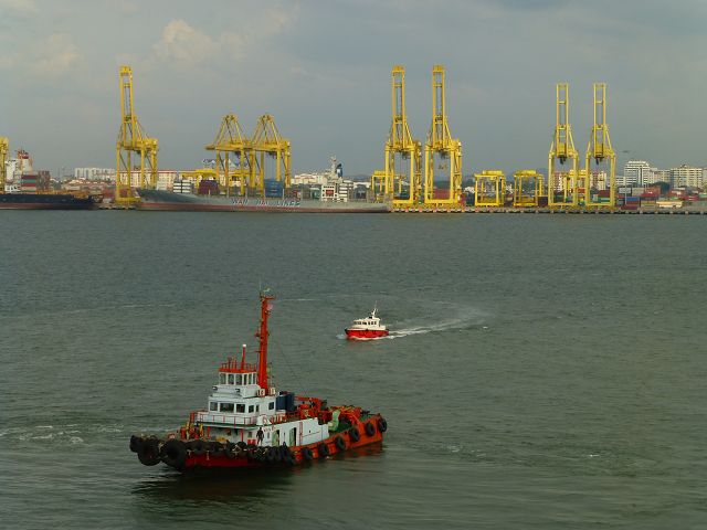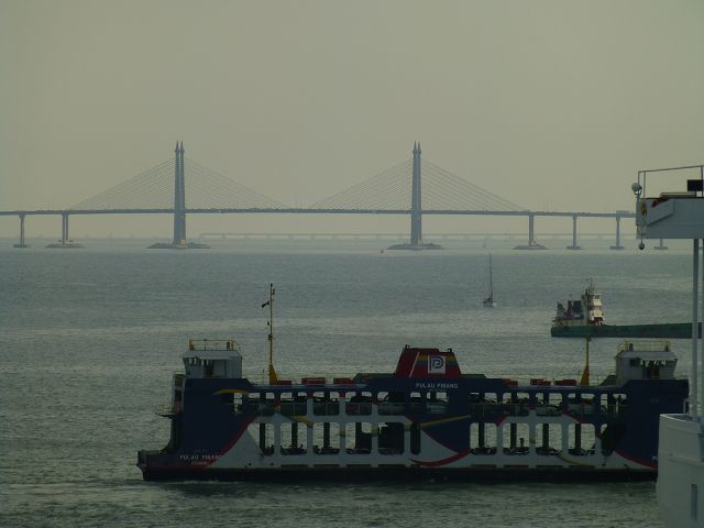 | Penang | Penang vorne Fähre hinter Penang Bridge Penang Bridge Jambatan Pulau Pinang 13,5 km lang 1985 fertiggestellt |