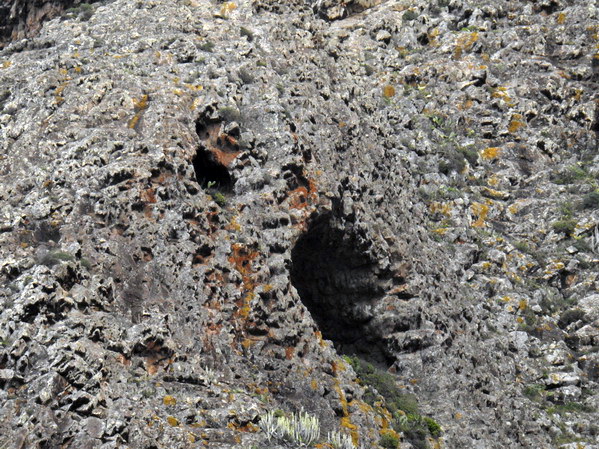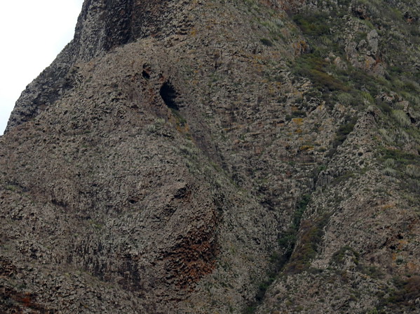 | anagagebirge Serpentinen vom Paß aus runter Punta del Hidalgo | anagagebirge Loch im Fels |