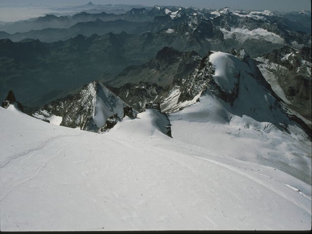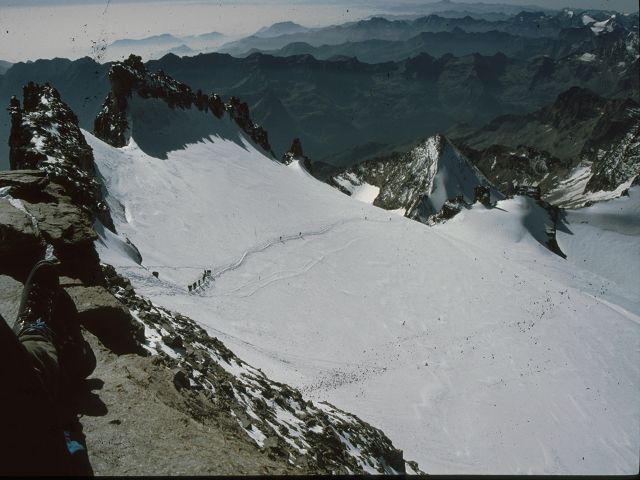 Die Haute Route durchquert die Walliser Alpen und die Pässe des Montblanc, teilweise durch vereiste Gletschergebiete, die nur mit Skiern und Steigeisen durchquert werden können.