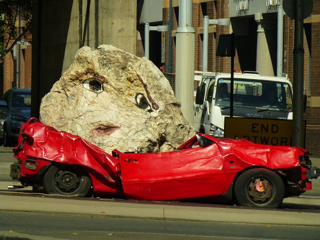 Sydney  Bus + Street  Woolloomooloo Rush Hour Sydney Sydney  Bus + Street  Woolloomooloo Car Monument Dont Move the Rocks