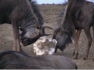 | Kambaku Safari Lodge Salzecke mit Gnu Wildebeestern | Kambaku Safari Lodge Salzecke mit Gnu Wildebeestern |