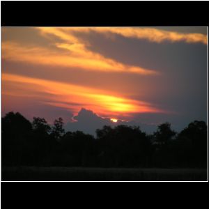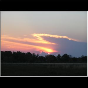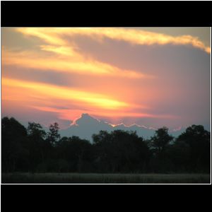 Sonnenuntergang im Okavango Maun Lodge. Thamalakane River Lodge