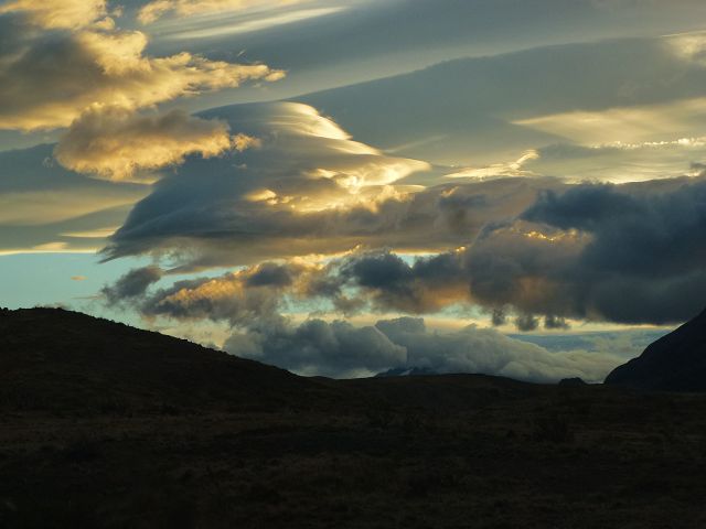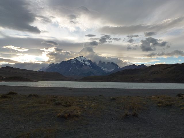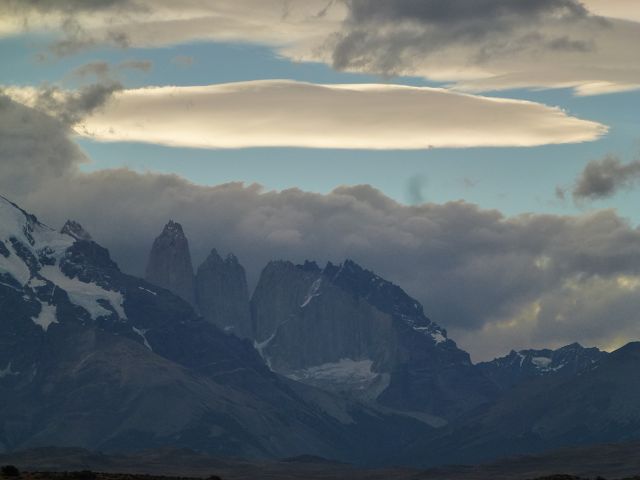 Torres del Paine  in der Dämmerung mit Wolke Torres del Paine  mit Kondor