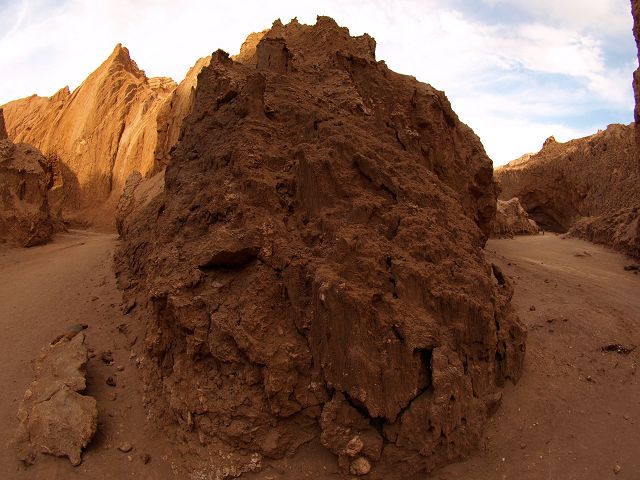 | Moon valley Mondtal erstarrter Salzfelsen es knackt bei sonnenschein | Moonvalley Mondtal Atacama Übersicht Fisheye |