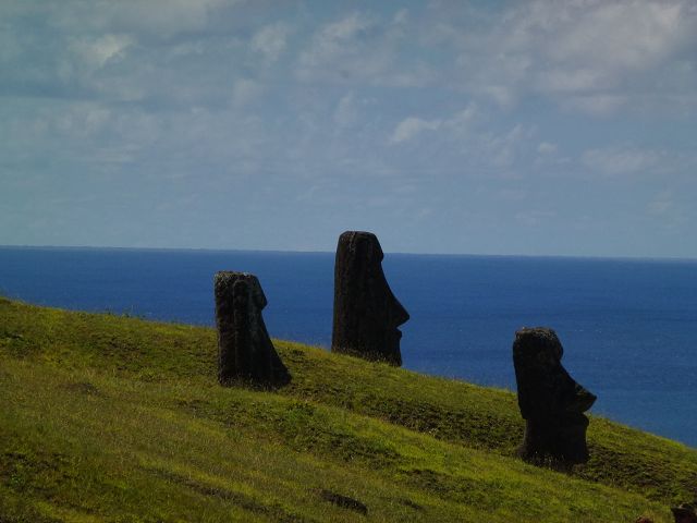 | diese Skulpturen Blick auf das Meer, den Moai Gesicht der Insel und sie über ihr Volk. Nur ein ahu ist auf die Hiva orientiert, ihre mythischen Kontinent Herkunft. Es gibt Hunderte von Moai auf der ganzen Insel verstreut. Die besten Orte, um sie zu bewundern sind die Ahus oder Rano Raraku Vulkan. Jede Statue wurde von den anderen unterscheidet und hatte Besonderheiten, die es möglich, sie mit den Vorfahren es symbolisiert zu identifizieren. Jeder hatte einen eigenen Namen, und manchmal sind sie gemalt wurden. Es ist auch möglich, dass sie eine definierte Geschlecht hatte. Die Größe und das Design der Statuen der Osterinsel entwickelt sich im Laufe der Zeit. Je kleiner und antiken Statuen sind ähnlich wie die Tiki der Marquesas und sind etwa 1 Meter hoch, die größeren sind 21,65 m und wiegen etwa 180 Tonnen. Der größte Moai jemals fertig sein und ergriffen werden, um ihr Ziel aus dem Te Pito Kura ahu (von ca. 9,84 m und 74 t), und die schwerste war in Tongariki angehoben (von 88 t, hob ein Kran). | |