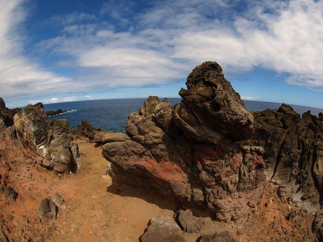 | Easter Island Isla de Pascua Osterinsel - Rapa Nui Moai Lavahoehle am Meer | Easter Island Isla de Pascua Osterinsel - Rapa Nui Moai Lavahoehle am Meer |