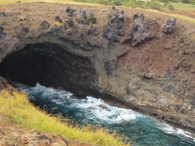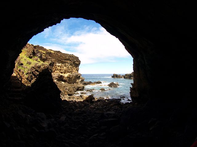 Osterinsel - Rapa Nui MoaiAna Kaitangata (Hanga Roa)Die Höhle hat Zugang zum Meer und diente den Botten als Schutz und